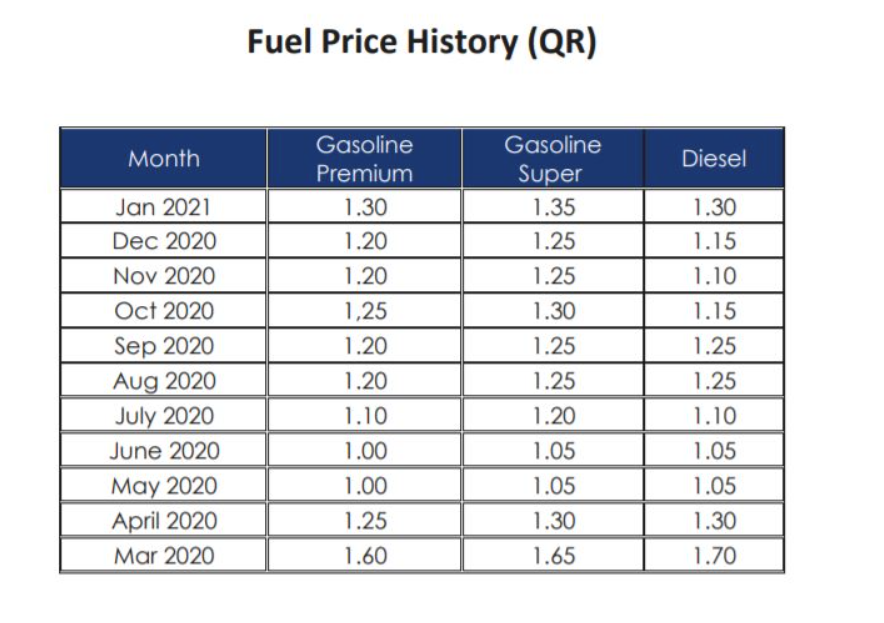 سعر الوقود في قطر لشهر فبراير 2021