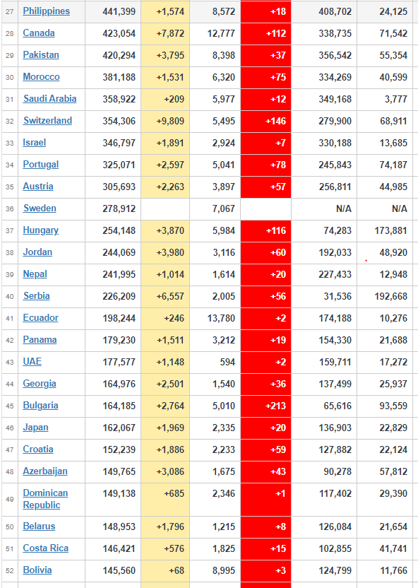 الدول المتضررة من فيروس كورونا كما في 4 ديسمبر 2020