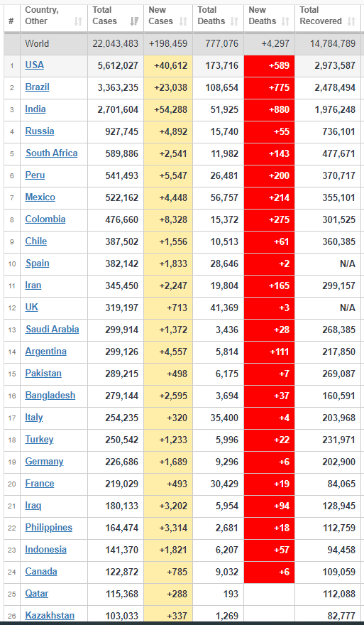 Coronavirus Most Affected Countries As On 22nd Mar'2020